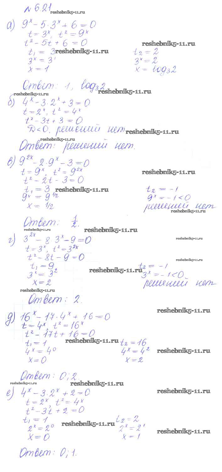 Готовая домашняя работа с ответами по Алгебре за 10 класс Никольский, Потапов, Решетников, Шевкин Учебник МГУ - школе Базовый и углубленный уровень Просвещение 2015 ФГОС - §6. Показательные и логарифмические уравнения и неравенства 21