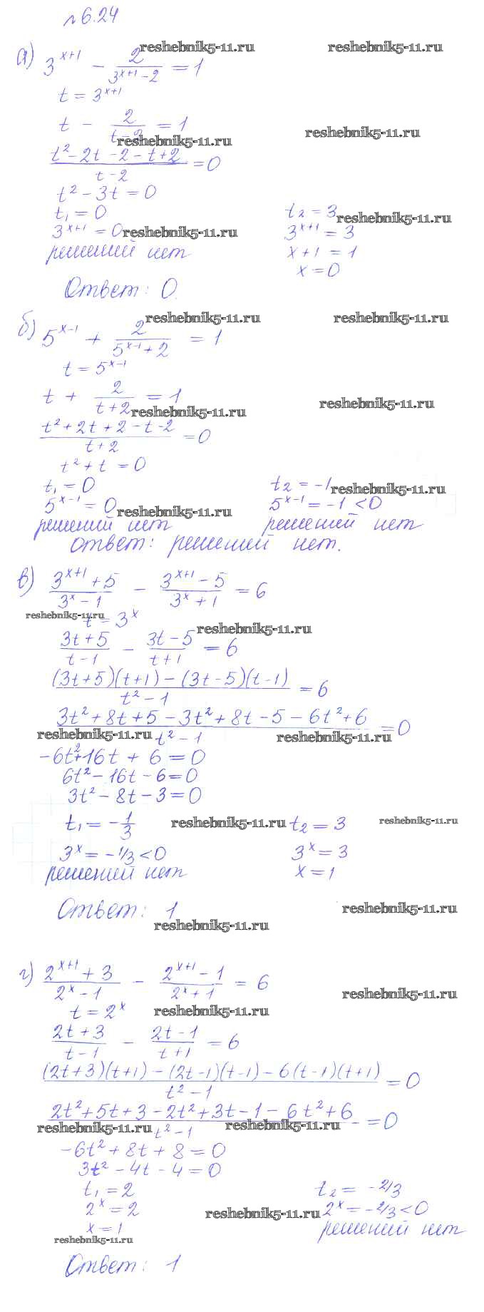 Готовая домашняя работа с ответами по Алгебре за 10 класс Никольский, Потапов, Решетников, Шевкин Учебник МГУ - школе Базовый и углубленный уровень Просвещение 2015 ФГОС - §6. Показательные и логарифмические уравнения и неравенства 24