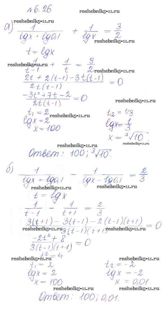 Готовая домашняя работа с ответами по Алгебре за 10 класс Никольский, Потапов, Решетников, Шевкин Учебник МГУ - школе Базовый и углубленный уровень Просвещение 2015 ФГОС - §6. Показательные и логарифмические уравнения и неравенства 26
