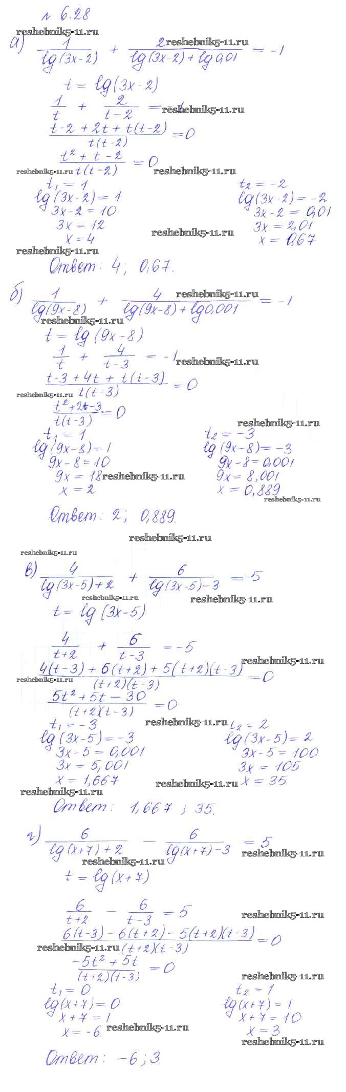 Готовая домашняя работа с ответами по Алгебре за 10 класс Никольский, Потапов, Решетников, Шевкин Учебник МГУ - школе Базовый и углубленный уровень Просвещение 2015 ФГОС - §6. Показательные и логарифмические уравнения и неравенства 28