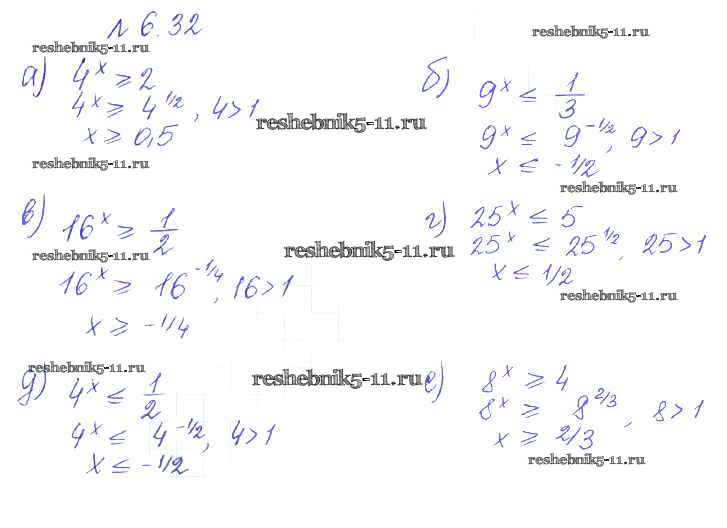 Готовая домашняя работа с ответами по Алгебре за 10 класс Никольский, Потапов, Решетников, Шевкин Учебник МГУ - школе Базовый и углубленный уровень Просвещение 2015 ФГОС - §6. Показательные и логарифмические уравнения и неравенства 32