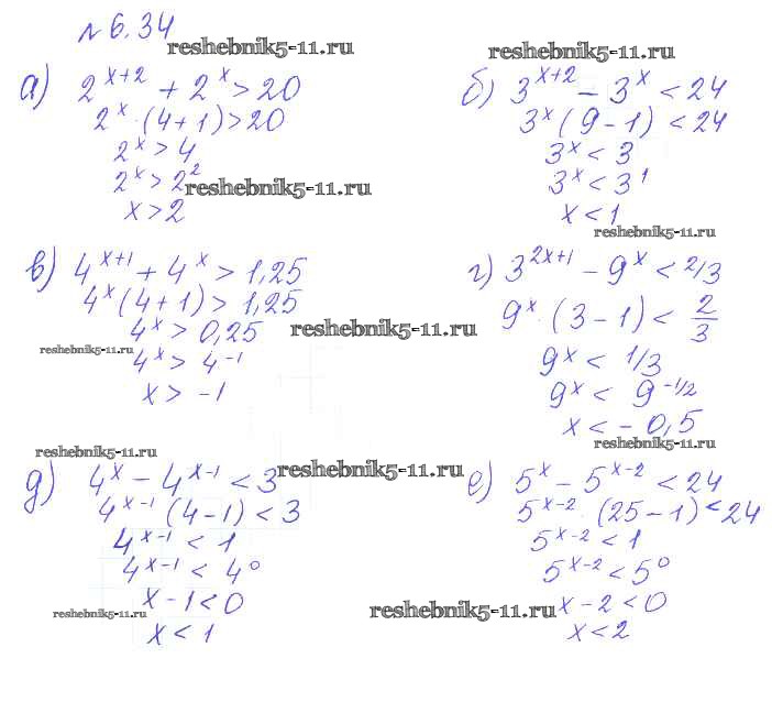 Готовая домашняя работа с ответами по Алгебре за 10 класс Никольский, Потапов, Решетников, Шевкин Учебник МГУ - школе Базовый и углубленный уровень Просвещение 2015 ФГОС - §6. Показательные и логарифмические уравнения и неравенства 34
