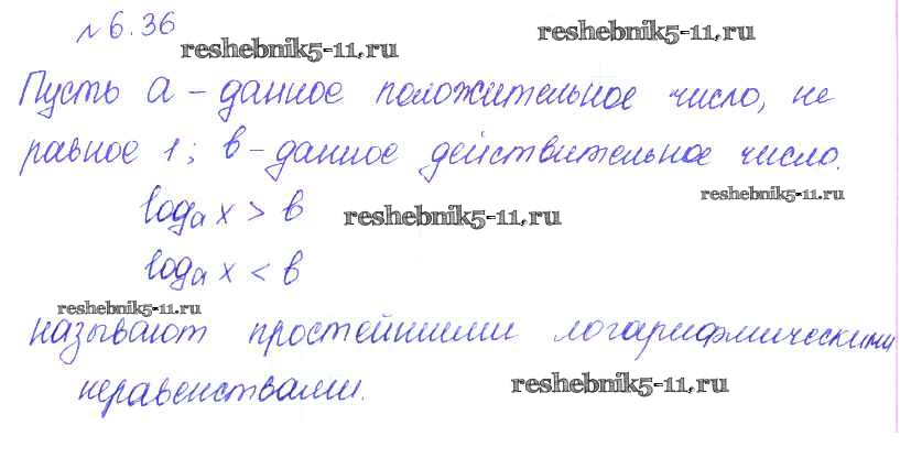 Готовая домашняя работа с ответами по Алгебре за 10 класс Никольский, Потапов, Решетников, Шевкин Учебник МГУ - школе Базовый и углубленный уровень Просвещение 2015 ФГОС - §6. Показательные и логарифмические уравнения и неравенства 36