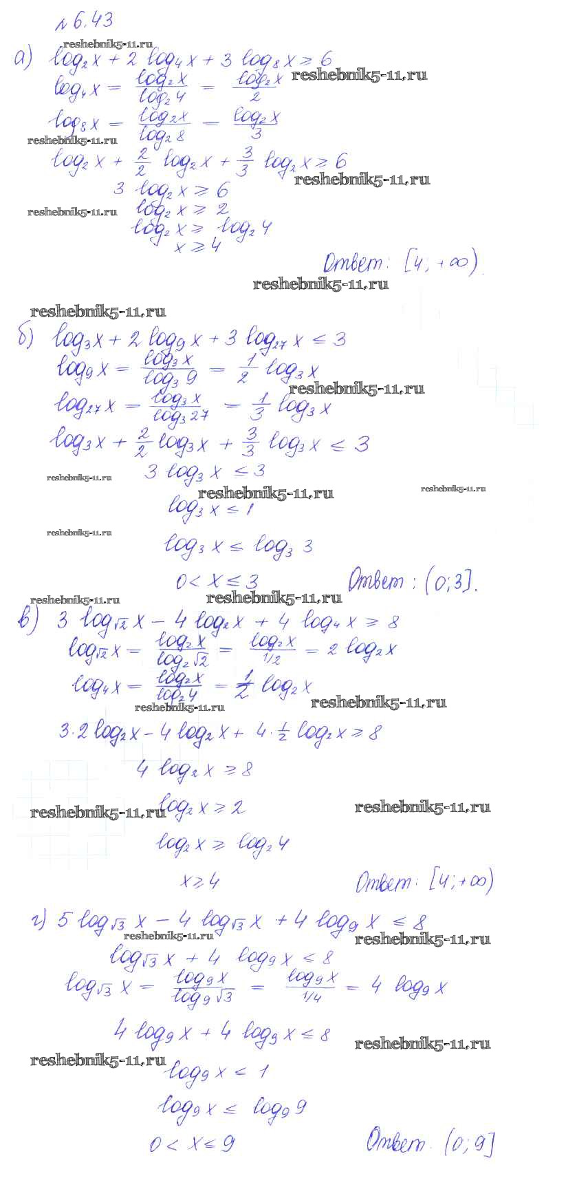 Готовая домашняя работа с ответами по Алгебре за 10 класс Никольский, Потапов, Решетников, Шевкин Учебник МГУ - школе Базовый и углубленный уровень Просвещение 2015 ФГОС - §6. Показательные и логарифмические уравнения и неравенства 43