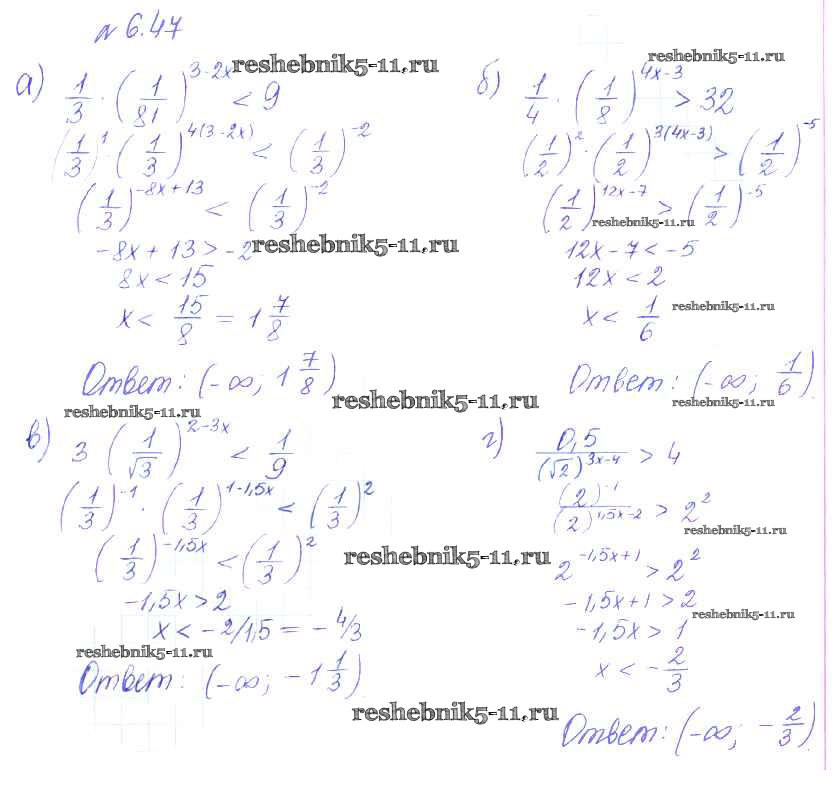 Готовая домашняя работа с ответами по Алгебре за 10 класс Никольский, Потапов, Решетников, Шевкин Учебник МГУ - школе Базовый и углубленный уровень Просвещение 2015 ФГОС - §6. Показательные и логарифмические уравнения и неравенства 47