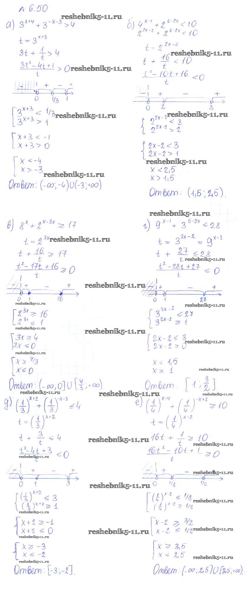 Готовая домашняя работа с ответами по Алгебре за 10 класс Никольский, Потапов, Решетников, Шевкин Учебник МГУ - школе Базовый и углубленный уровень Просвещение 2015 ФГОС - §6. Показательные и логарифмические уравнения и неравенства 50
