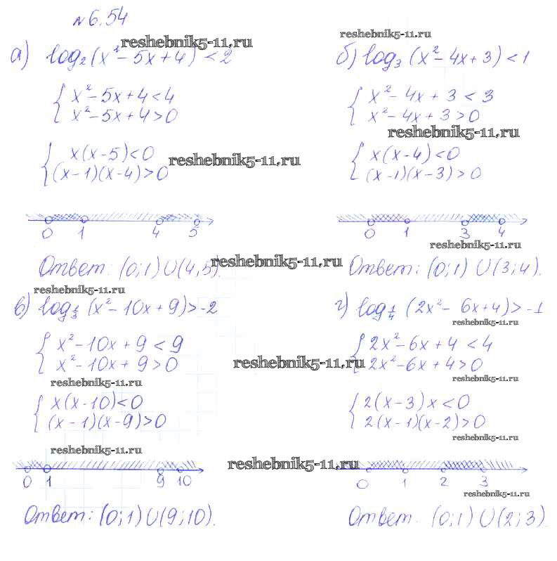 Готовая домашняя работа с ответами по Алгебре за 10 класс Никольский, Потапов, Решетников, Шевкин Учебник МГУ - школе Базовый и углубленный уровень Просвещение 2015 ФГОС - §6. Показательные и логарифмические уравнения и неравенства 54