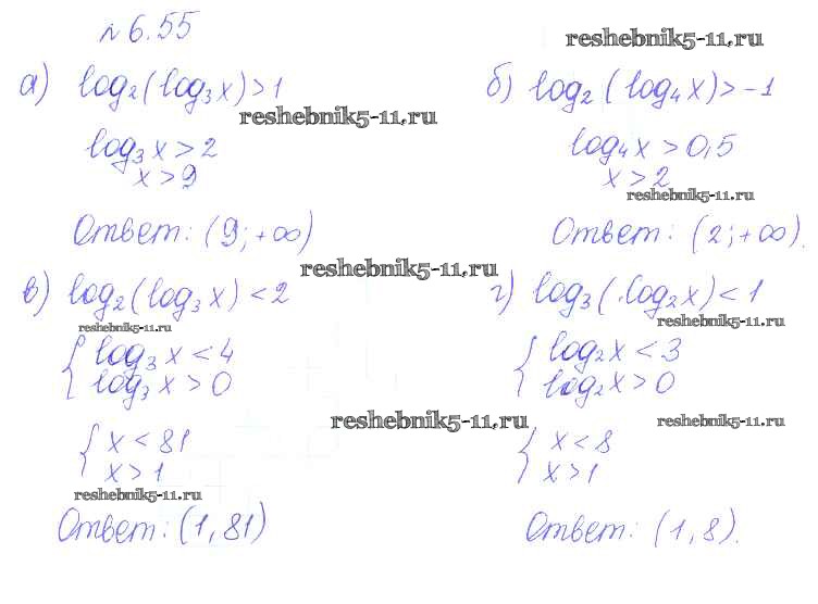 Готовая домашняя работа с ответами по Алгебре за 10 класс Никольский, Потапов, Решетников, Шевкин Учебник МГУ - школе Базовый и углубленный уровень Просвещение 2015 ФГОС - §6. Показательные и логарифмические уравнения и неравенства 55