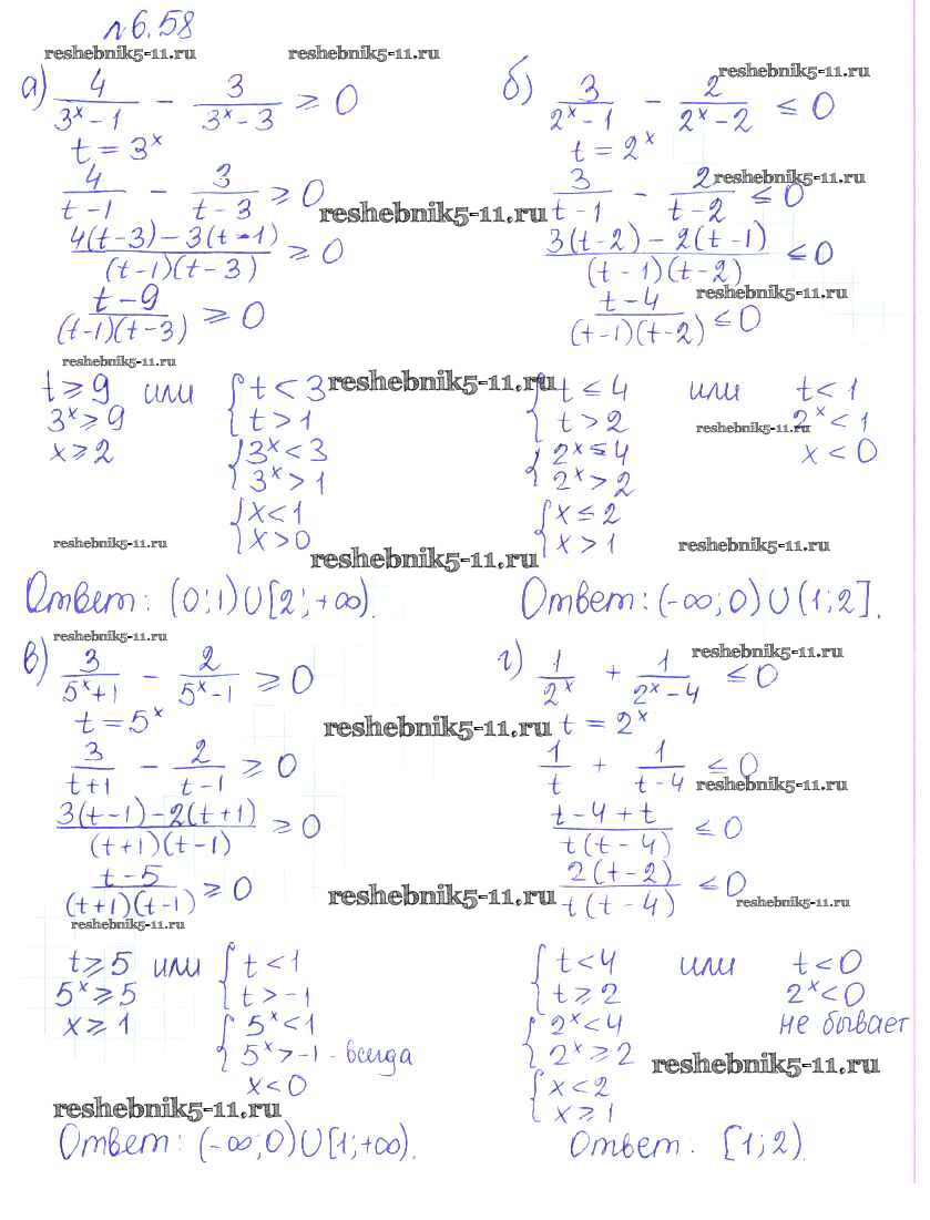 Готовая домашняя работа с ответами по Алгебре за 10 класс Никольский, Потапов, Решетников, Шевкин Учебник МГУ - школе Базовый и углубленный уровень Просвещение 2015 ФГОС - §6. Показательные и логарифмические уравнения и неравенства 58