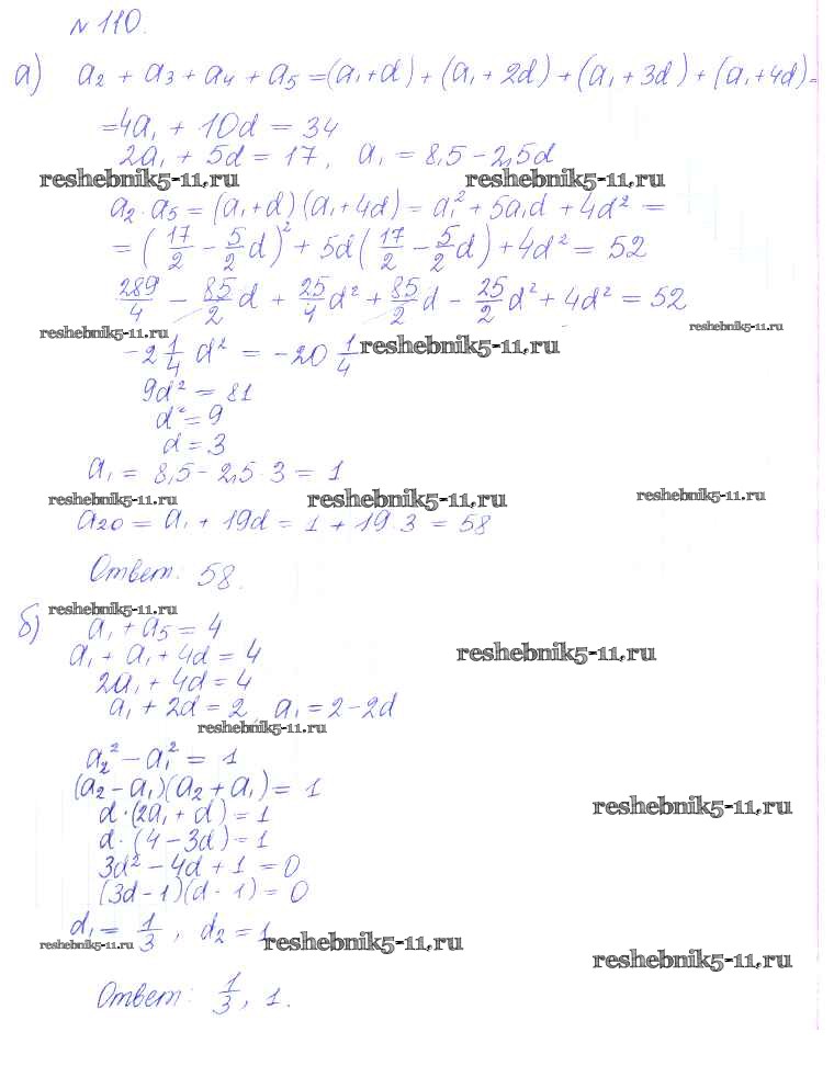 Готовая домашняя работа с ответами по Алгебре за 10 класс Никольский, Потапов, Решетников, Шевкин Учебник МГУ - школе Базовый и углубленный уровень Просвещение 2015 ФГОС - Задания для повторения 110