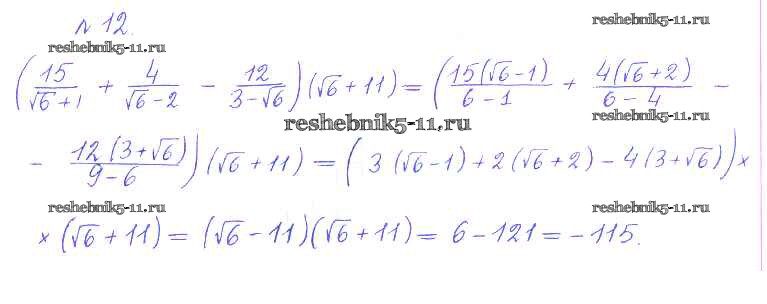 Готовая домашняя работа с ответами по Алгебре за 10 класс Никольский, Потапов, Решетников, Шевкин Учебник МГУ - школе Базовый и углубленный уровень Просвещение 2015 ФГОС - Задания для повторения 12