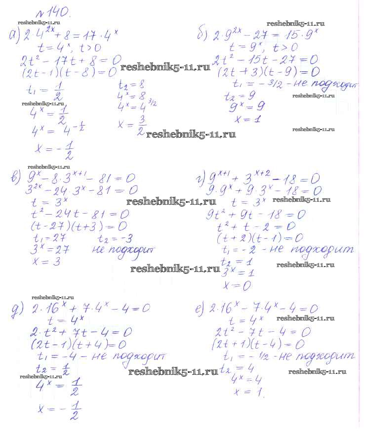 Готовая домашняя работа с ответами по Алгебре за 10 класс Никольский, Потапов, Решетников, Шевкин Учебник МГУ - школе Базовый и углубленный уровень Просвещение 2015 ФГОС - Задания для повторения 140