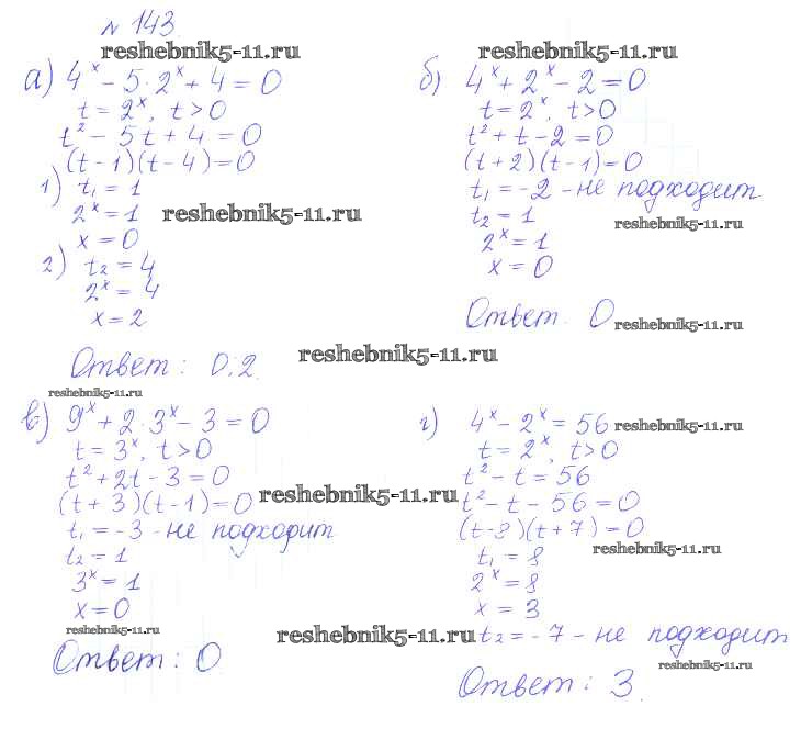 Готовая домашняя работа с ответами по Алгебре за 10 класс Никольский, Потапов, Решетников, Шевкин Учебник МГУ - школе Базовый и углубленный уровень Просвещение 2015 ФГОС - Задания для повторения 143