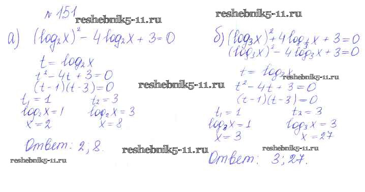Готовая домашняя работа с ответами по Алгебре за 10 класс Никольский, Потапов, Решетников, Шевкин Учебник МГУ - школе Базовый и углубленный уровень Просвещение 2015 ФГОС - Задания для повторения 151