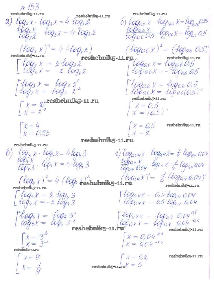 Готовая домашняя работа с ответами по Алгебре за 10 класс Никольский, Потапов, Решетников, Шевкин Учебник МГУ - школе Базовый и углубленный уровень Просвещение 2015 ФГОС - Задания для повторения 153