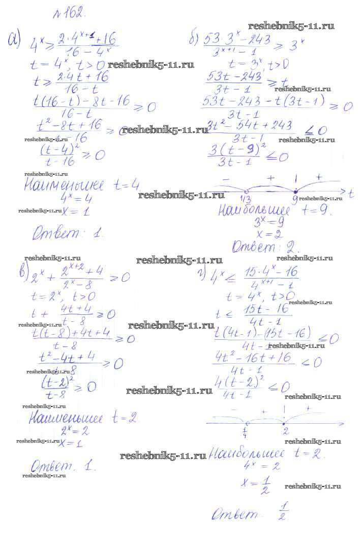 Готовая домашняя работа с ответами по Алгебре за 10 класс Никольский, Потапов, Решетников, Шевкин Учебник МГУ - школе Базовый и углубленный уровень Просвещение 2015 ФГОС - Задания для повторения 162