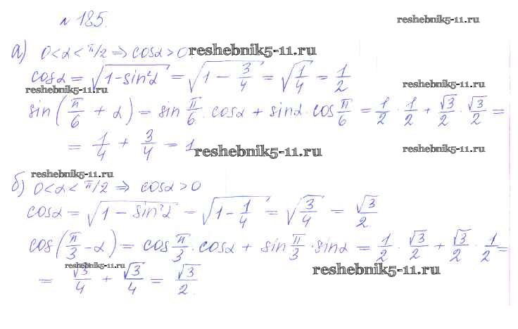 Готовая домашняя работа с ответами по Алгебре за 10 класс Никольский, Потапов, Решетников, Шевкин Учебник МГУ - школе Базовый и углубленный уровень Просвещение 2015 ФГОС - Задания для повторения 185