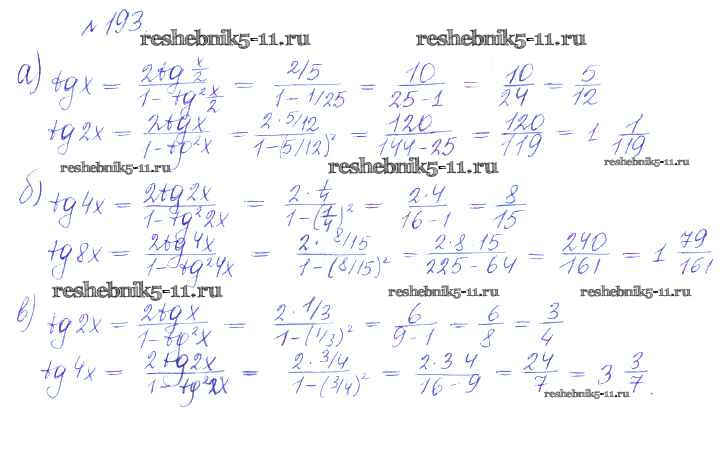 Готовая домашняя работа с ответами по Алгебре за 10 класс Никольский, Потапов, Решетников, Шевкин Учебник МГУ - школе Базовый и углубленный уровень Просвещение 2015 ФГОС - Задания для повторения 193