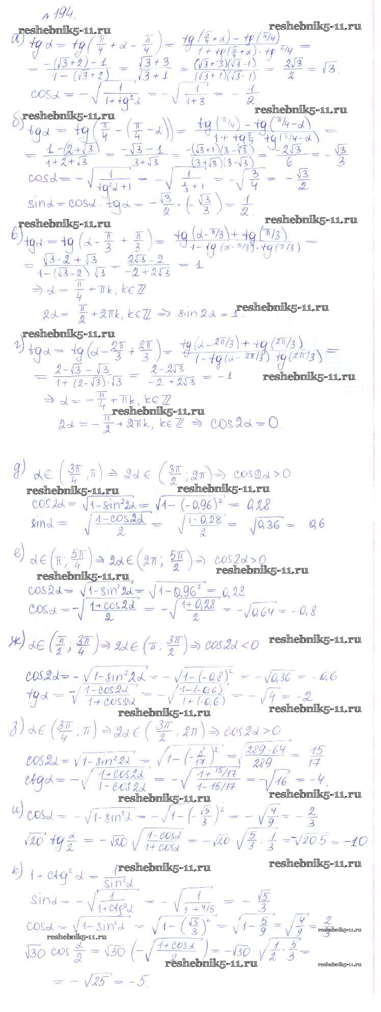 Готовая домашняя работа с ответами по Алгебре за 10 класс Никольский, Потапов, Решетников, Шевкин Учебник МГУ - школе Базовый и углубленный уровень Просвещение 2015 ФГОС - Задания для повторения 194