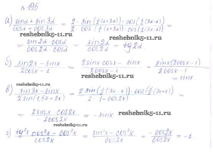 Готовая домашняя работа с ответами по Алгебре за 10 класс Никольский, Потапов, Решетников, Шевкин Учебник МГУ - школе Базовый и углубленный уровень Просвещение 2015 ФГОС - Задания для повторения 195