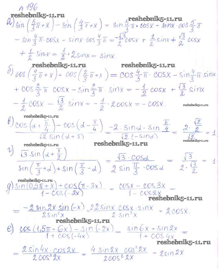 Готовая домашняя работа с ответами по Алгебре за 10 класс Никольский, Потапов, Решетников, Шевкин Учебник МГУ - школе Базовый и углубленный уровень Просвещение 2015 ФГОС - Задания для повторения 196