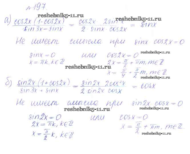 Готовая домашняя работа с ответами по Алгебре за 10 класс Никольский, Потапов, Решетников, Шевкин Учебник МГУ - школе Базовый и углубленный уровень Просвещение 2015 ФГОС - Задания для повторения 197