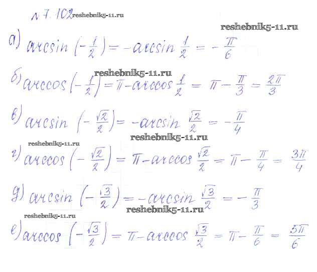 Готовая домашняя работа с ответами по Алгебре за 10 класс Никольский, Потапов, Решетников, Шевкин Учебник МГУ - школе Базовый и углубленный уровень Просвещение 2015 ФГОС - §7. Синус и косинус угла 102