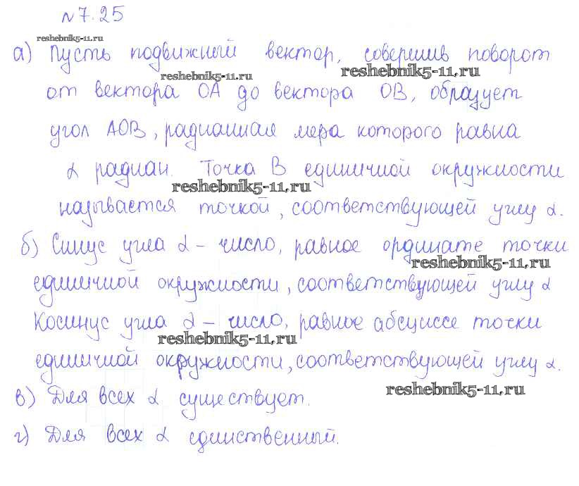Готовая домашняя работа с ответами по Алгебре за 10 класс Никольский, Потапов, Решетников, Шевкин Учебник МГУ - школе Базовый и углубленный уровень Просвещение 2015 ФГОС - §7. Синус и косинус угла 25