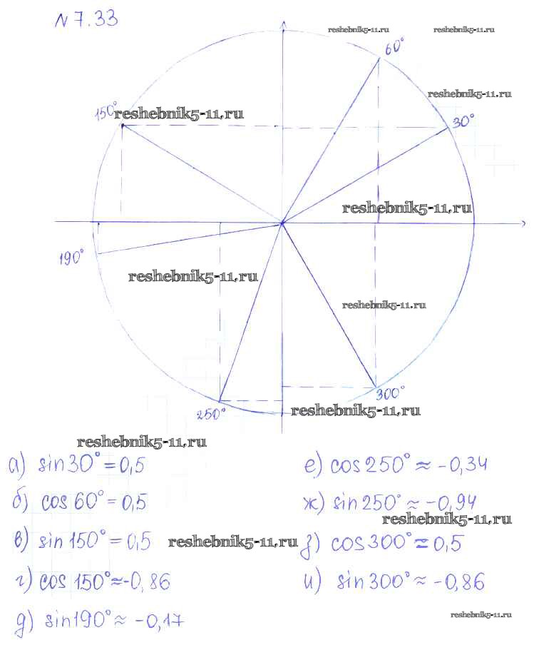 Готовая домашняя работа с ответами по Алгебре за 10 класс Никольский, Потапов, Решетников, Шевкин Учебник МГУ - школе Базовый и углубленный уровень Просвещение 2015 ФГОС - §7. Синус и косинус угла 33
