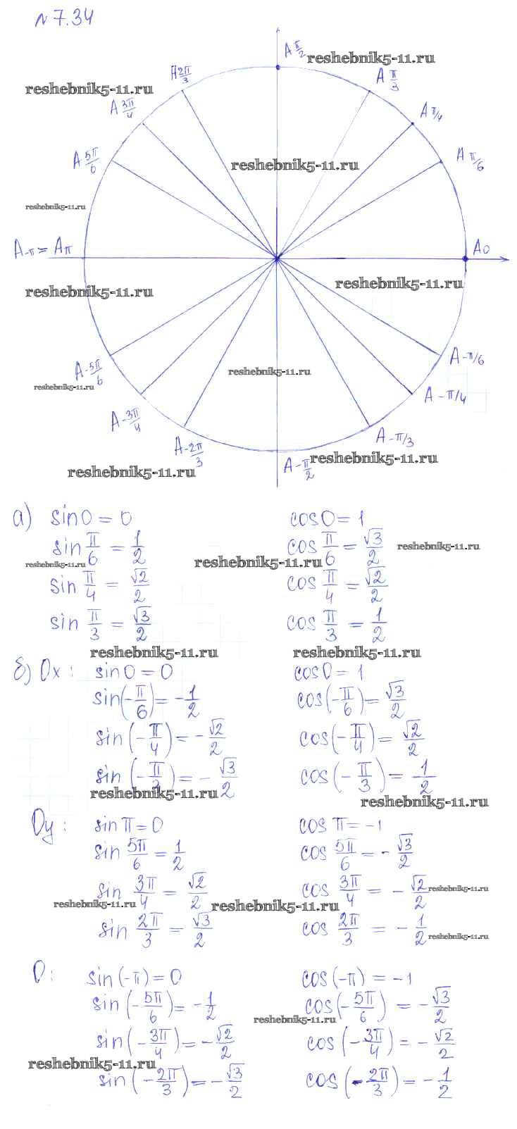 Готовая домашняя работа с ответами по Алгебре за 10 класс Никольский, Потапов, Решетников, Шевкин Учебник МГУ - школе Базовый и углубленный уровень Просвещение 2015 ФГОС - §7. Синус и косинус угла 34