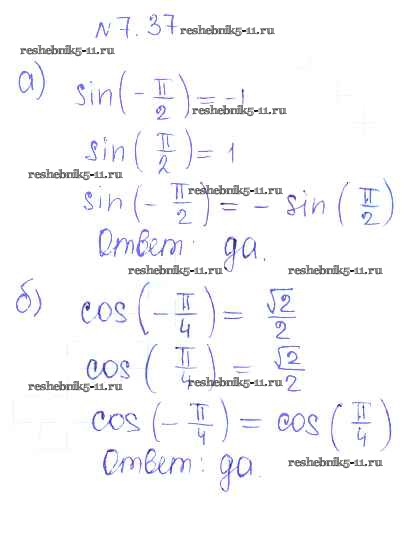 Готовая домашняя работа с ответами по Алгебре за 10 класс Никольский, Потапов, Решетников, Шевкин Учебник МГУ - школе Базовый и углубленный уровень Просвещение 2015 ФГОС - §7. Синус и косинус угла 37