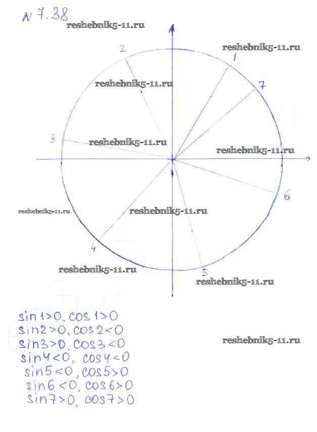 Готовая домашняя работа с ответами по Алгебре за 10 класс Никольский, Потапов, Решетников, Шевкин Учебник МГУ - школе Базовый и углубленный уровень Просвещение 2015 ФГОС - §7. Синус и косинус угла 38