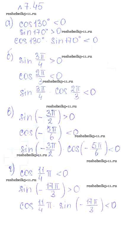 Готовая домашняя работа с ответами по Алгебре за 10 класс Никольский, Потапов, Решетников, Шевкин Учебник МГУ - школе Базовый и углубленный уровень Просвещение 2015 ФГОС - §7. Синус и косинус угла 45