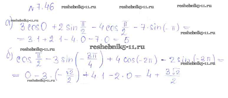 Готовая домашняя работа с ответами по Алгебре за 10 класс Никольский, Потапов, Решетников, Шевкин Учебник МГУ - школе Базовый и углубленный уровень Просвещение 2015 ФГОС - §7. Синус и косинус угла 46
