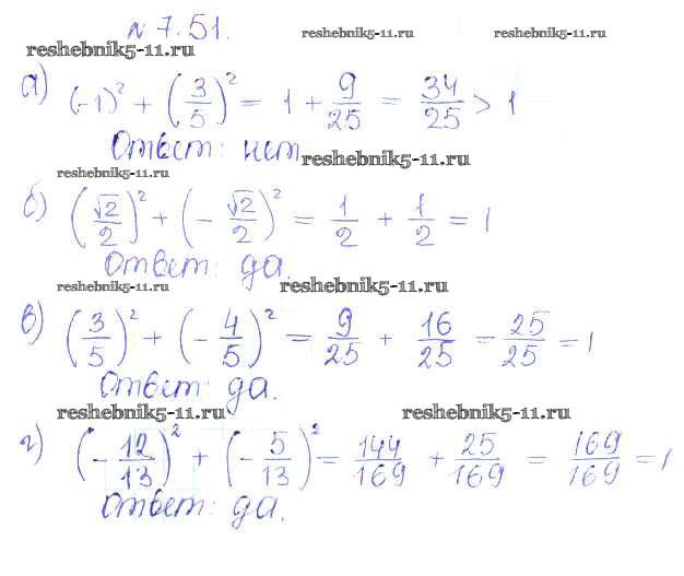 Готовая домашняя работа с ответами по Алгебре за 10 класс Никольский, Потапов, Решетников, Шевкин Учебник МГУ - школе Базовый и углубленный уровень Просвещение 2015 ФГОС - §7. Синус и косинус угла 51