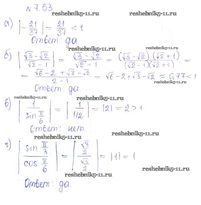 Готовая домашняя работа с ответами по Алгебре за 10 класс Никольский, Потапов, Решетников, Шевкин Учебник МГУ - школе Базовый и углубленный уровень Просвещение 2015 ФГОС - §7. Синус и косинус угла 53
