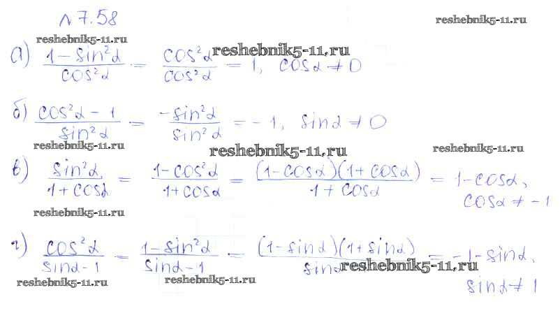 Готовая домашняя работа с ответами по Алгебре за 10 класс Никольский, Потапов, Решетников, Шевкин Учебник МГУ - школе Базовый и углубленный уровень Просвещение 2015 ФГОС - §7. Синус и косинус угла 58