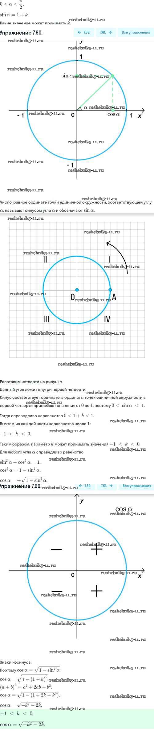 Готовая домашняя работа с ответами по Алгебре за 10 класс Никольский, Потапов, Решетников, Шевкин Учебник МГУ - школе Базовый и углубленный уровень Просвещение 2015 ФГОС - §7. Синус и косинус угла 7.60