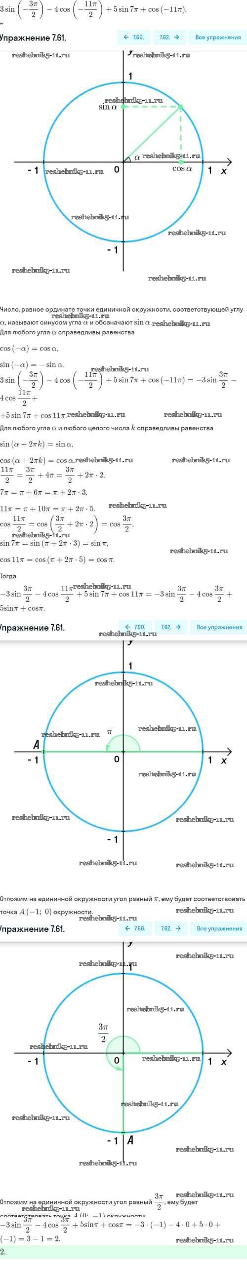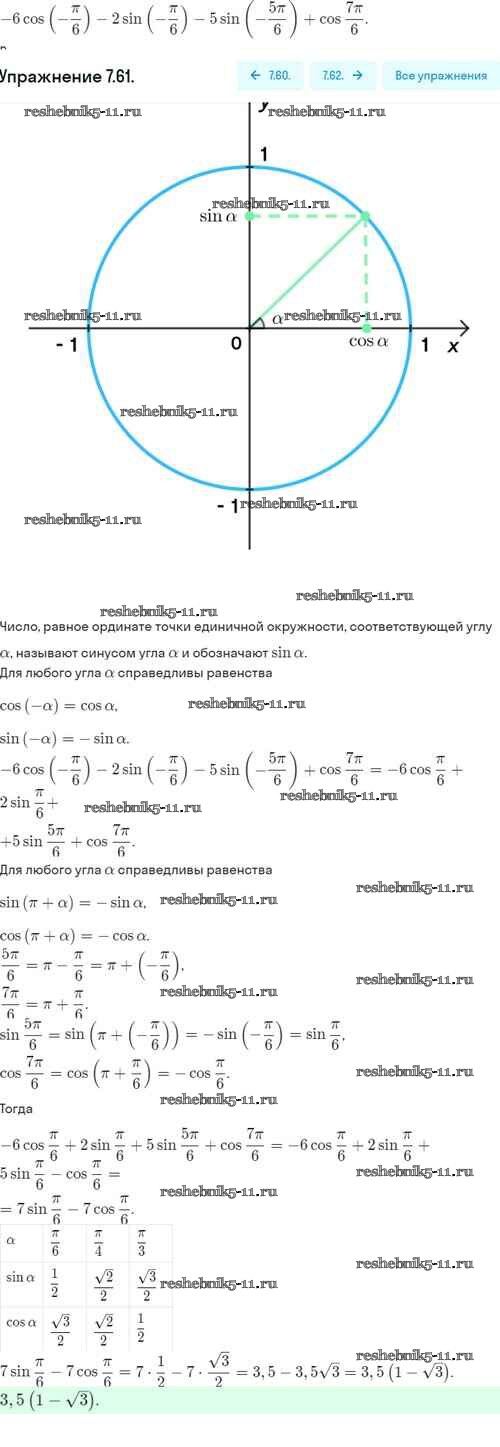 Готовая домашняя работа с ответами по Алгебре за 10 класс Никольский, Потапов, Решетников, Шевкин Учебник МГУ - школе Базовый и углубленный уровень Просвещение 2015 ФГОС - §7. Синус и косинус угла 7.61