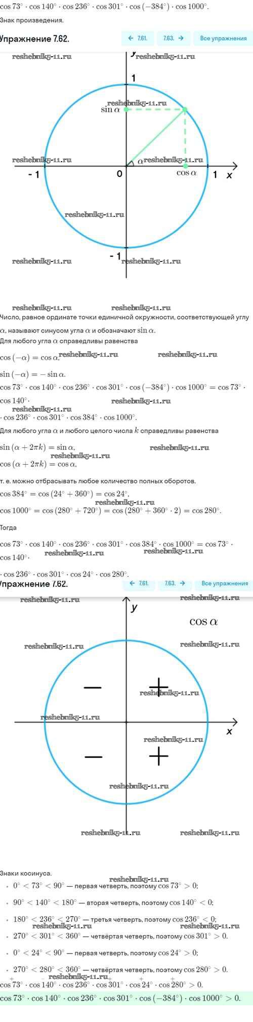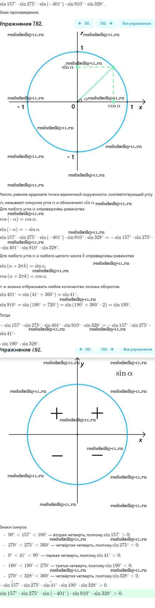 Готовая домашняя работа с ответами по Алгебре за 10 класс Никольский, Потапов, Решетников, Шевкин Учебник МГУ - школе Базовый и углубленный уровень Просвещение 2015 ФГОС - §7. Синус и косинус угла 7.62