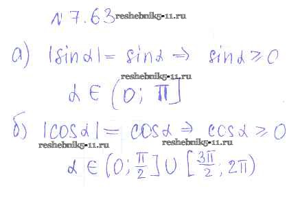 Готовая домашняя работа с ответами по Алгебре за 10 класс Никольский, Потапов, Решетников, Шевкин Учебник МГУ - школе Базовый и углубленный уровень Просвещение 2015 ФГОС - §7. Синус и косинус угла 63