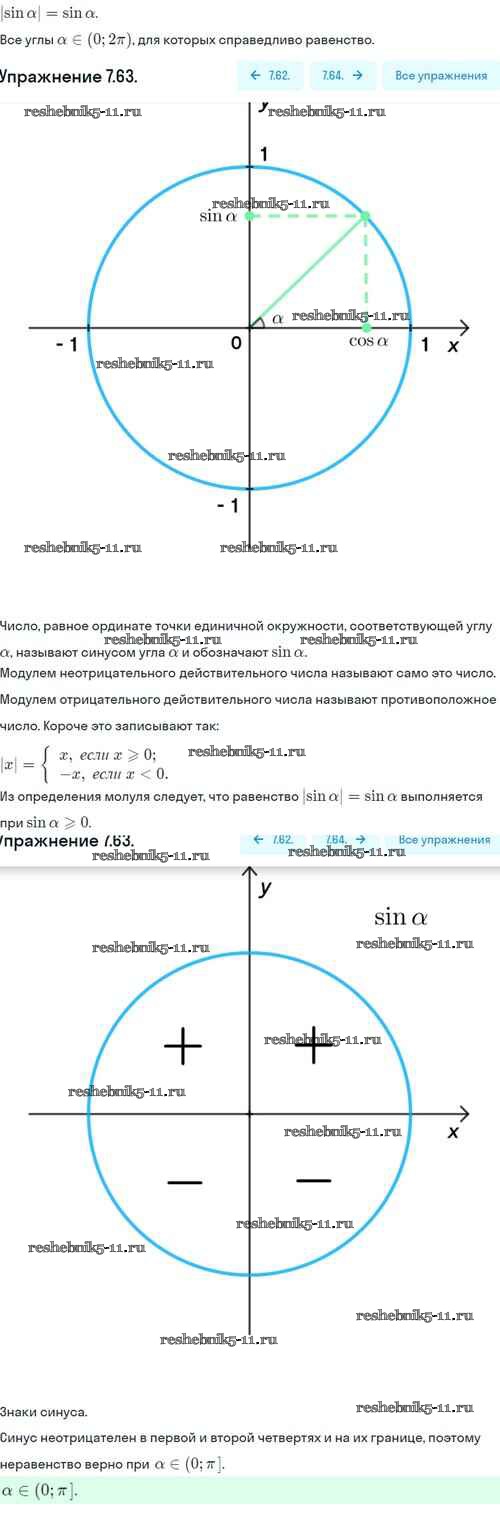 Готовая домашняя работа с ответами по Алгебре за 10 класс Никольский, Потапов, Решетников, Шевкин Учебник МГУ - школе Базовый и углубленный уровень Просвещение 2015 ФГОС - §7. Синус и косинус угла 7.63