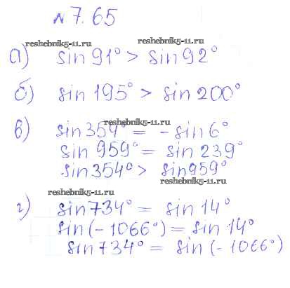 Готовая домашняя работа с ответами по Алгебре за 10 класс Никольский, Потапов, Решетников, Шевкин Учебник МГУ - школе Базовый и углубленный уровень Просвещение 2015 ФГОС - §7. Синус и косинус угла 65