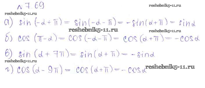 Готовая домашняя работа с ответами по Алгебре за 10 класс Никольский, Потапов, Решетников, Шевкин Учебник МГУ - школе Базовый и углубленный уровень Просвещение 2015 ФГОС - §7. Синус и косинус угла 69
