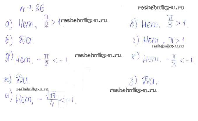 Готовая домашняя работа с ответами по Алгебре за 10 класс Никольский, Потапов, Решетников, Шевкин Учебник МГУ - школе Базовый и углубленный уровень Просвещение 2015 ФГОС - §7. Синус и косинус угла 86
