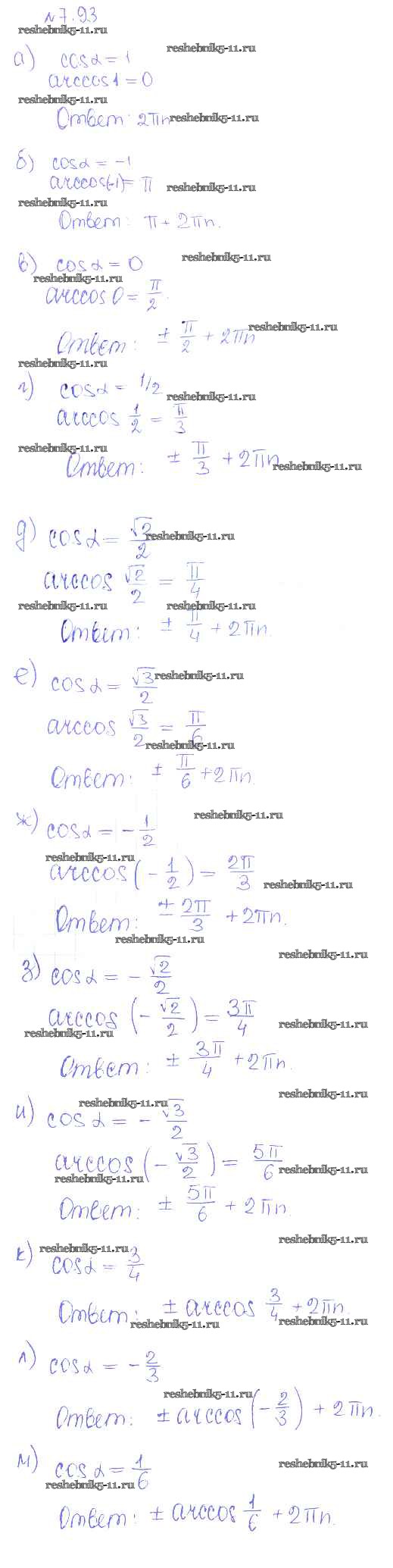 Готовая домашняя работа с ответами по Алгебре за 10 класс Никольский, Потапов, Решетников, Шевкин Учебник МГУ - школе Базовый и углубленный уровень Просвещение 2015 ФГОС - §7. Синус и косинус угла 93