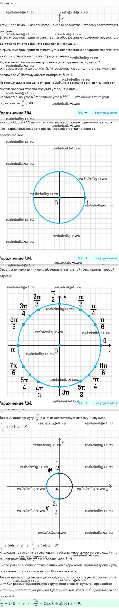 Готовая домашняя работа с ответами по Алгебре за 10 класс Никольский, Потапов, Решетников, Шевкин Учебник МГУ - школе Базовый и углубленный уровень Просвещение 2015 ФГОС - §7. Синус и косинус угла 7.94