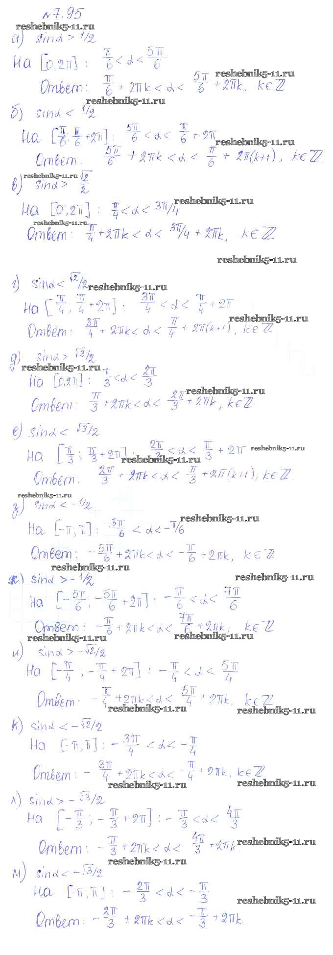 Готовая домашняя работа с ответами по Алгебре за 10 класс Никольский, Потапов, Решетников, Шевкин Учебник МГУ - школе Базовый и углубленный уровень Просвещение 2015 ФГОС - §7. Синус и косинус угла 95