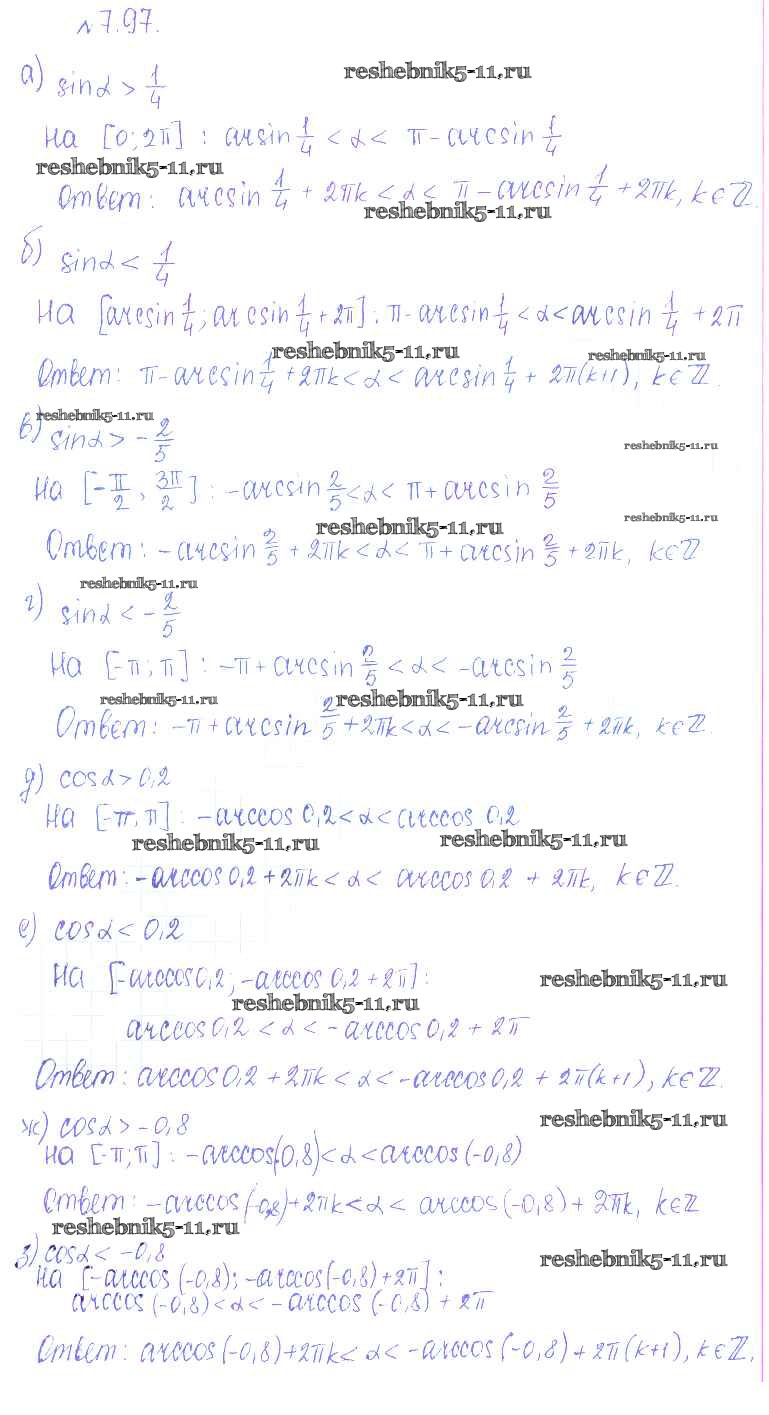 Готовая домашняя работа с ответами по Алгебре за 10 класс Никольский, Потапов, Решетников, Шевкин Учебник МГУ - школе Базовый и углубленный уровень Просвещение 2015 ФГОС - §7. Синус и косинус угла 97