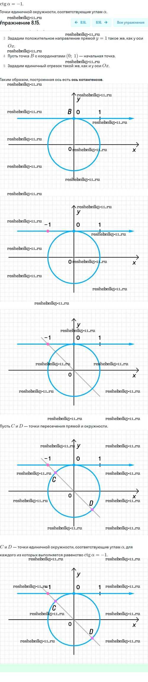Готовая домашняя работа с ответами по Алгебре за 10 класс Никольский, Потапов, Решетников, Шевкин Учебник МГУ - школе Базовый и углубленный уровень Просвещение 2015 ФГОС - §8. Тангес и катангес угла 8.15